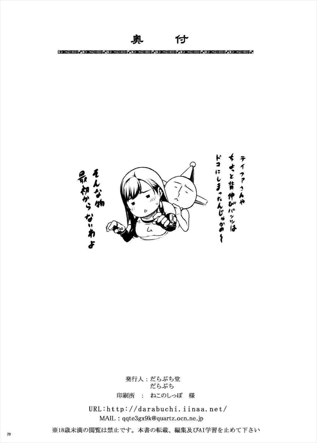 【FF】ティファがパコられまくる3話収納同人誌!アバランチの為に性奴隷になったり、風俗嬢になったり、マテリアで催眠をかけられ犯されまくったり・・ぼて腹好きなら3話ともあり!!ww まだ誰も評価してません。初評価オナシャス! 投票ボタンは読み終ったところにあるよ! My本棚に追加 My本棚へ行く⇒ だらぶち堂を元にした作品 1 冊を全て一覧表示する 投稿された順番でループ! <<前の本へ だらぶち堂でループ! <<前の本へ My本棚に追加 My本棚へ行く⇒ ↓の☆をタップ(クリック)するとこの作品に投票出来ます (まだ評価されていません) 【☆1←低 高→☆5】読み込み中... ※タップ(クリック)した瞬間に投票となります。☆の数を間違えないようにして下さいね。 ⇒ランキングを見に行く! この作品に含まれていたタグ 肉便器調教ぼて腹水着バニーガール母乳催眠巨乳マゾ女アヘ顔快楽落ち この作品にコメントを書く コメントを残す コメントをキャンセルメールアドレスが公開されることはありません。 ※ が付いている欄は必須項目です↓コメントを書く名前 メール サイト 次回のコメントで使用するためブラウザーに自分の名前、メールアドレス、サイトを保存する。 email confirm* post date* 日本語が含まれない投稿は無視されますのでご注意ください。(スパム対策) 【文字数制限をかけました。100文字まで。長文のコメントはお控え下さい。】 ※『コメントを送信ボタン』を押してもデータの送信が完了するまでに数秒かかります。二度押すと連投になるので注意して下さい。