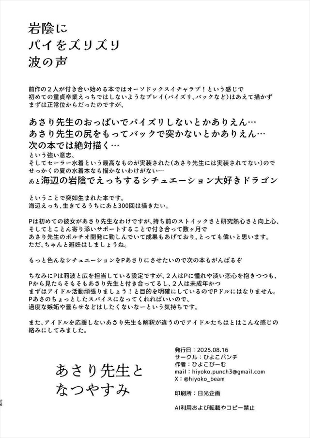 【学マス】あさり先生が彼氏のPとビーチの岩場で隠れてパイズリをしたり、セーラー水着姿でいちゃラブエッチ♡声を我慢しながら膣奥をぐりぐりされてボルチオイきしちゃう♪